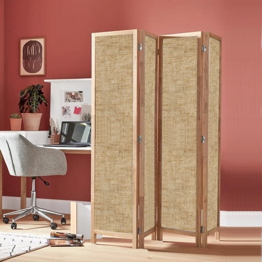 Partition Room Divider - 4 Panel Natural Fiber Foldi...